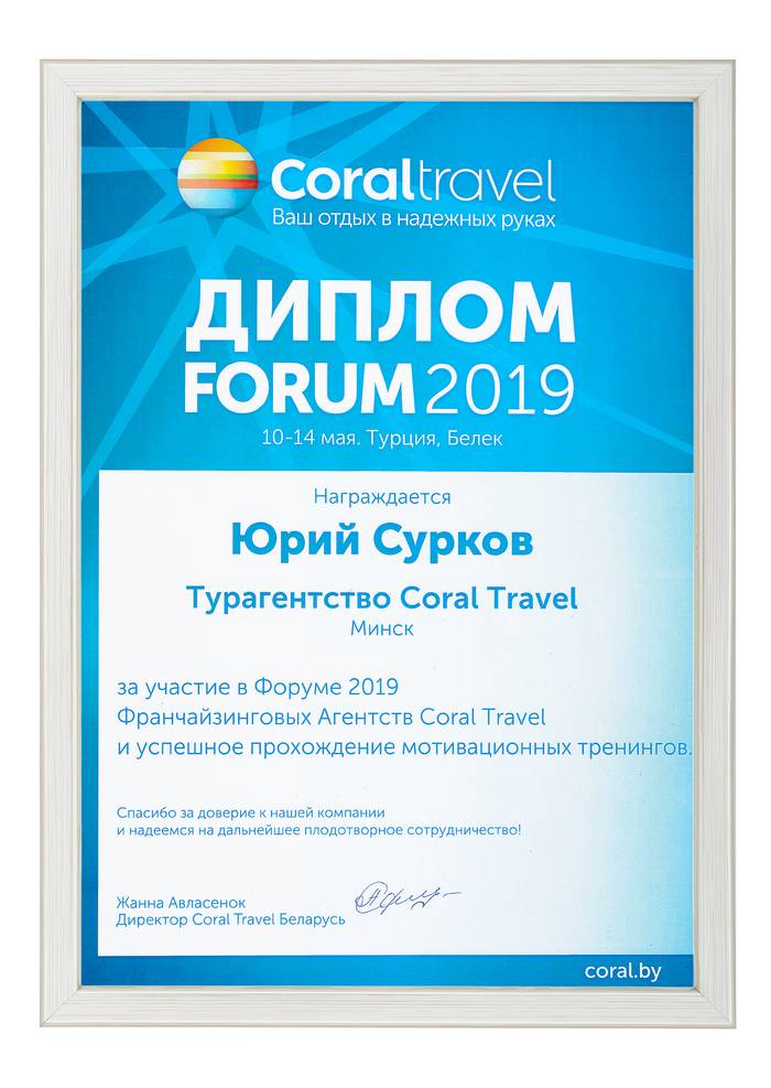 Благодарю вас за оперативный подбор тура для отдыха с маленьким ребенком. Отдыхали в Турции. Менеджер сразу предложила отель, который мне понравился, по прибытию ожидания оправдались. Буду рекомендовать своим знакомым!